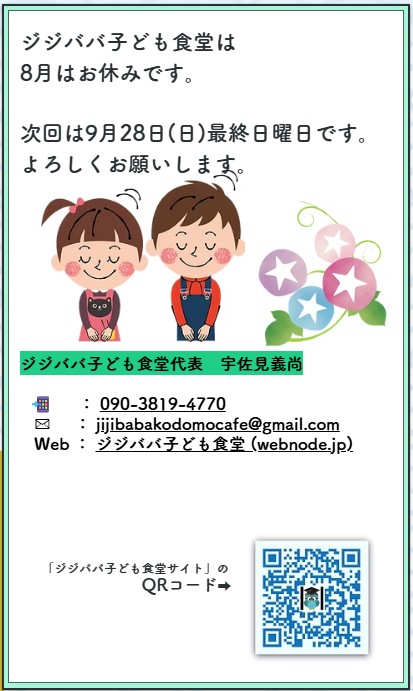 2024年8月のジジババ子ども食堂お休みのお知らせ