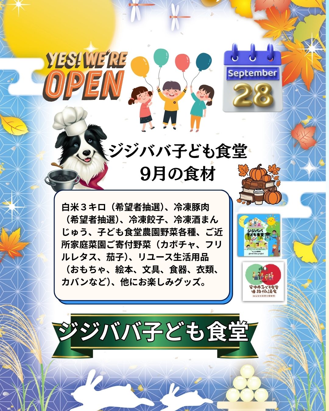 9月24日(日)ジジババ子ども食堂からのお知らせ